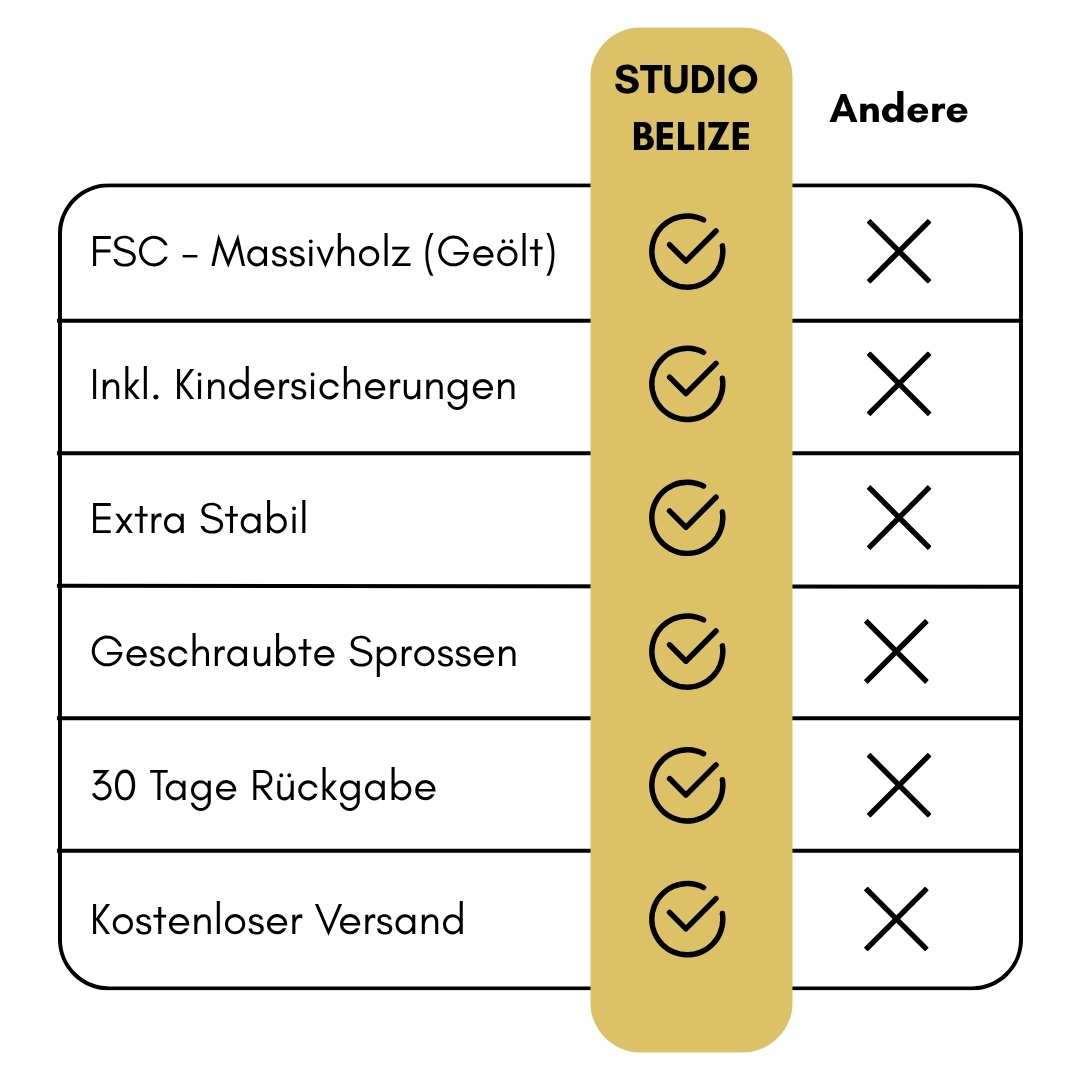 Sicher - besonders hautfreundlich und schadstofffrei: Aus unbehandeltem, FSC-zertifiziertem Naturholz, ohne chemische Farben oder Lacke. Fair und nachhaltig hergestellt – für die Sicherheit deines Kindes.